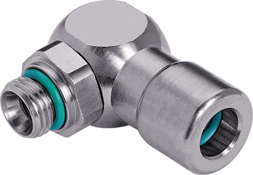 - Złączka wtykowa kątowa obrotowa, gwint zewnętrzny metryczny M, Eisele, ciśnienie 24 bar, mosiądz niklowany