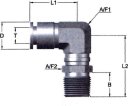- Złączka wtykowa kątowa obrotowa, gwint zewnętrzny stożkowy R, ciśnienie 20 bar, stal nierdzewna 316 L