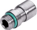 - Złączka wtykowa prosta z 2 uszczelkami, z gniazdem sześciokątnym, gwint zewnętrzny metryczny M, Eisele, FKM, ciśnienie 24 bar, mosiądz niklowany