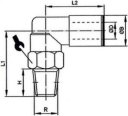 - Złączki wtykowe kątowe obrotowe z gwintem zewnętrznym stożkowym